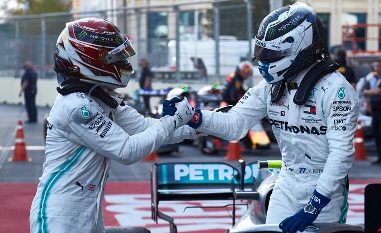Piloti Mercedes entusiasti per la quinta doppietta stagionale consecutiva - I piloti Mercedes entusiasti per la quinta doppietta stagionale consecutiva