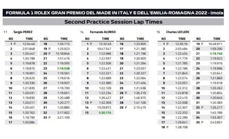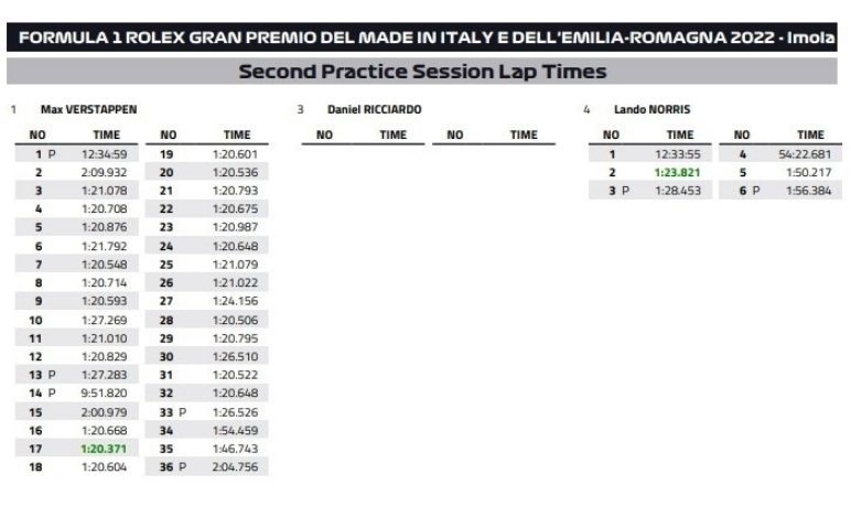 ... Tabella completa dei tempi