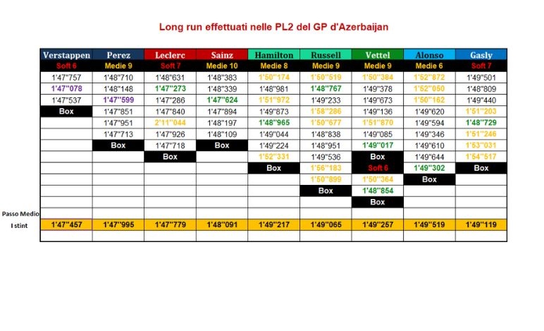 ... Tabella completa dei tempi