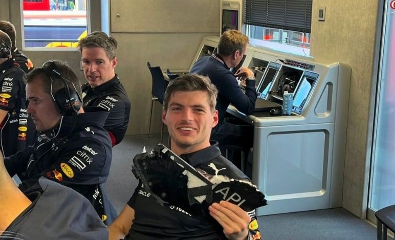 Verstappen la prende con ironia, ecco la foto con il detrito che gli ha rovinato la gara - Verstappen la prende con ironia, ecco la foto con il detrito che gli ha rovinato la gara