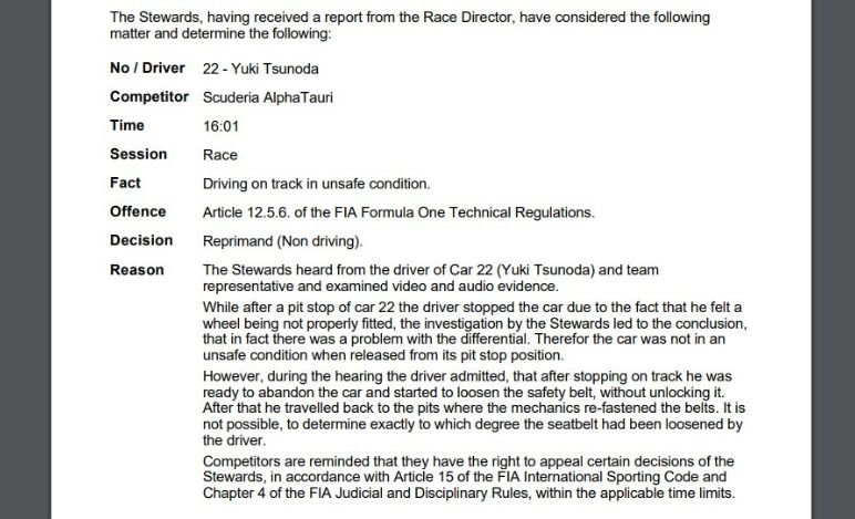 UFFICIALE - GP Olanda: Tsunoda ripreso per 'guida non sicura'. Il recap delle penalità in gara  - UFFICIALE - GP Olanda: Tsunoda ripreso per 'guida non sicura'. Il recap delle penalità in gara