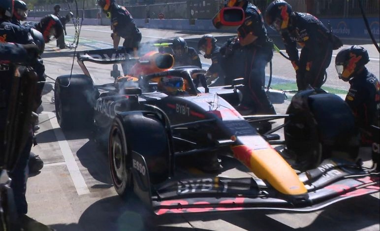 Fumo dall'anteriore di Perez, Horner: «Raccolti detriti, sono occorsi due giri per bruciarli» - Fumo dall'anteriore di Perez, Horner: «Raccolti detriti, sono occorsi due giri per bruciarli»