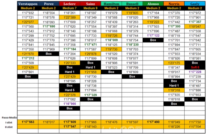 ... Tabella completa dei tempi