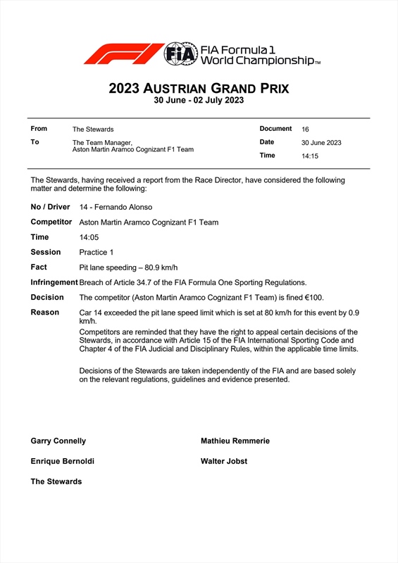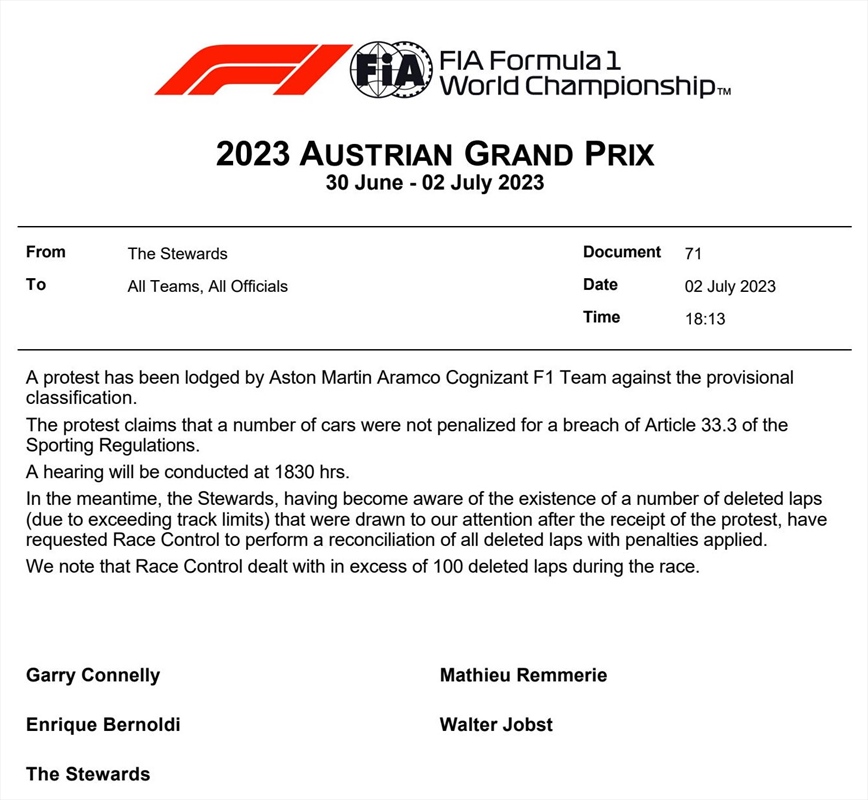 GP Austria, l'Aston Martin ha presentato un ricorso per modificare il risultato della gara - GP Austria, l'Aston Martin ha presentato un ricorso per modificare il risultato della gara