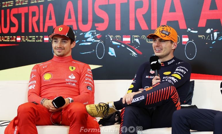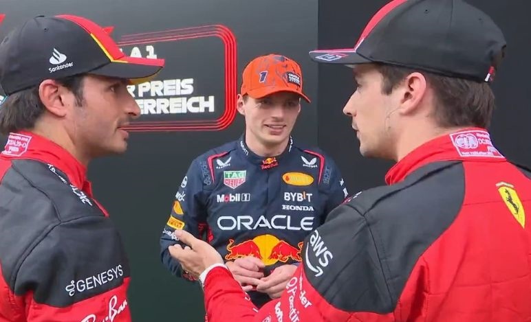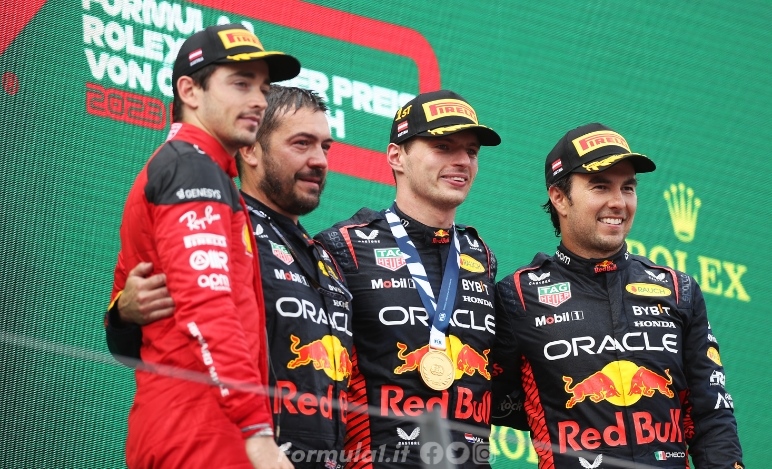 Verstappen e quella presa in giro di Leclerc nel retropodio del GP d'Austria - Verstappen e quella presa in giro di Leclerc nel retropodio del GP d'Austria