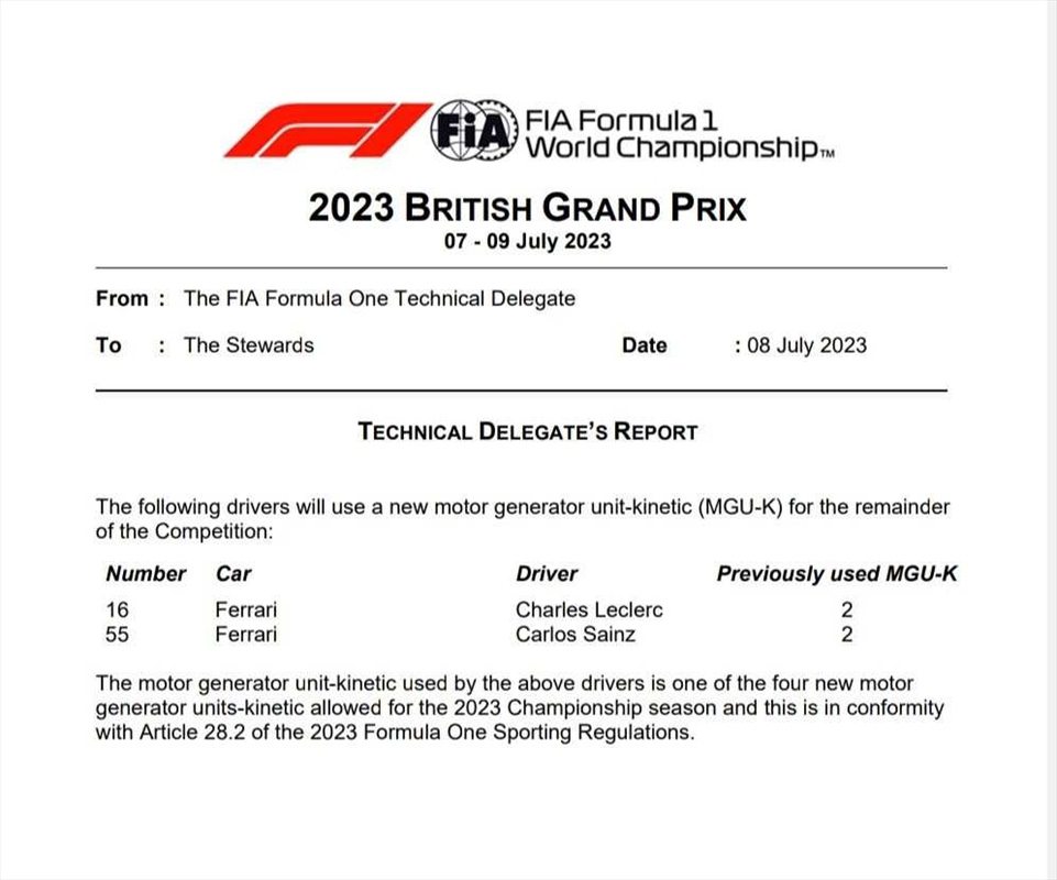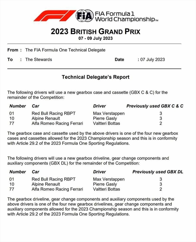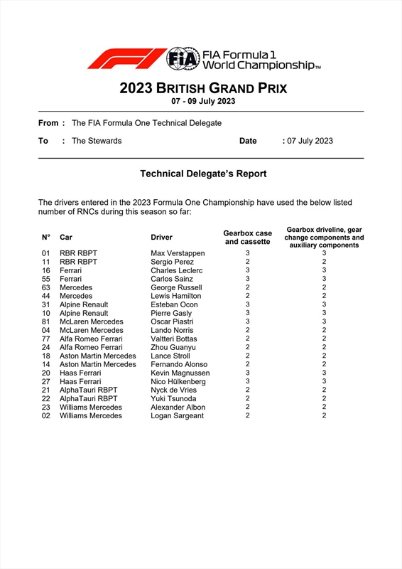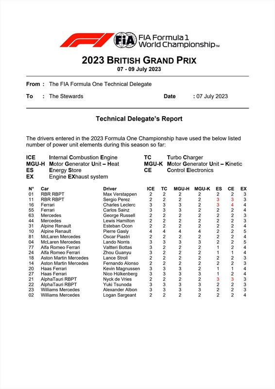 GP Gran Bretagna - Tabella componenti usate. Molti piloti a rischio penalità - GP Gran Bretagna - Tabella componenti usate. Molti piloti a rischio penalità