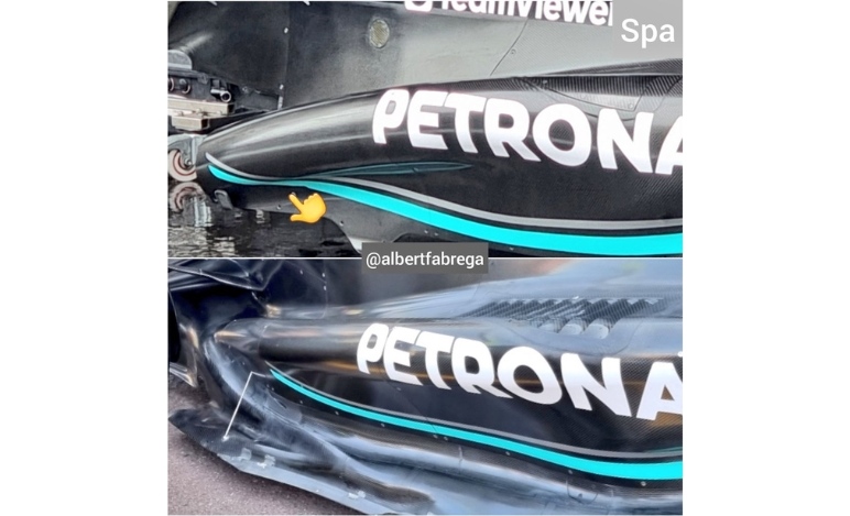 GP Belgio - Immagini dal circuito - Ala posteriore, pance, bocche d'ingresso e fondo, è una Mercedes «C» - GP Belgio - Immagini dal circuito - Nuovi sidepod e inlet per la Mercedes