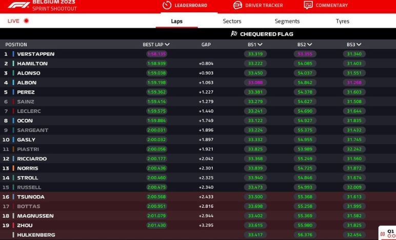 GP Belgio - PL1 - Sul bagnato Sainz davanti a tutti. Verstappen senza tempo - GP Ungheria - PL1 - Sainz davanti a tutti al termine della sessione bagnata. Verstappen senza tempo