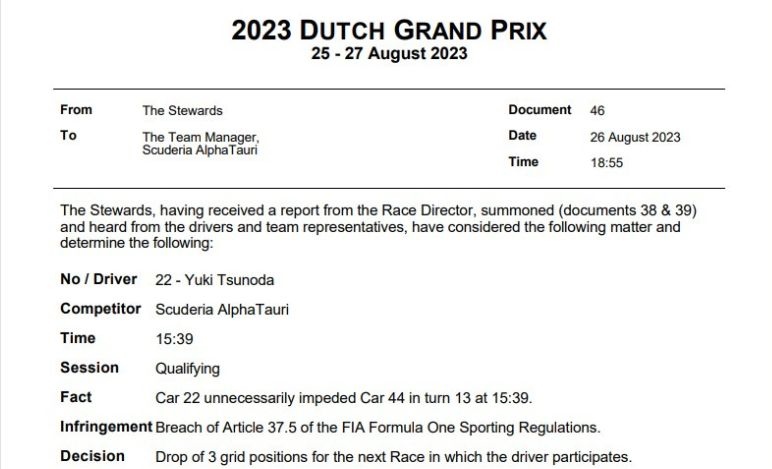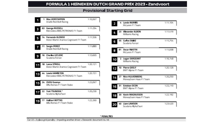 UFFICIALE - La griglia di partenza del GP d'Olanda 2023 a seguito delle penalità - UFFICIALE - La griglia di partenza del GP d'Olanda 2023 a seguito delle penalità
