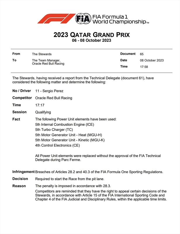 GP Qatar, Perez furioso con la FIA: «Decisione assurda» - GP Qatar, Perez furioso con la FIA: «Decisione assurda»