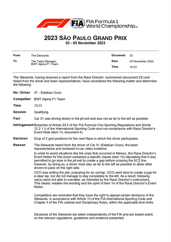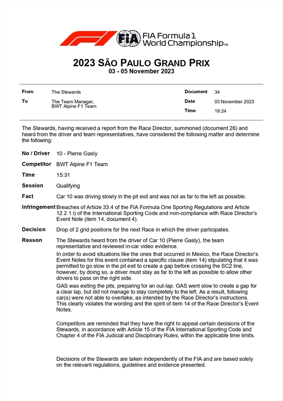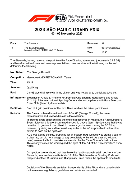 GP Brasile - due piloti sotto investigazione e a rischio penalità, il motivo - UFFICIALE: due piloti sotto investigazione e a rischio penalità, il motivo