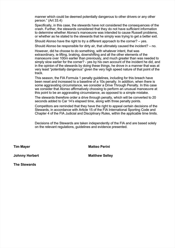 VIDEO - GP Australia - La frenata di Alonso ai danni di Russell - VIDEO - GP Australia - La frenata di Alonso ai danni di Russell