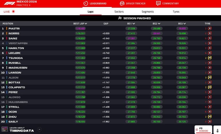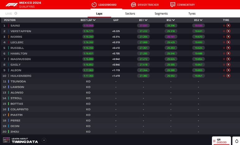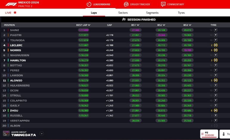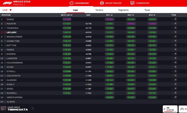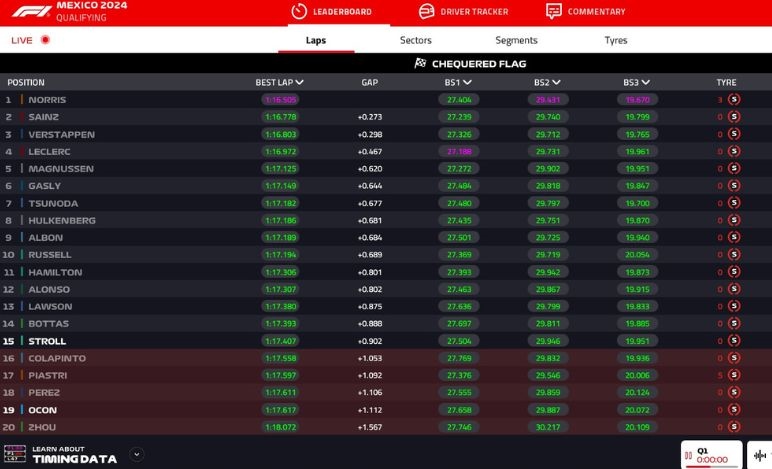 UFFICIALE - La griglia di partenza del GP del Messico 2024 - UFFICIALE - La griglia di partenza del GP del Messico 2024