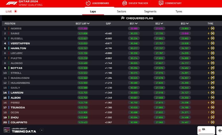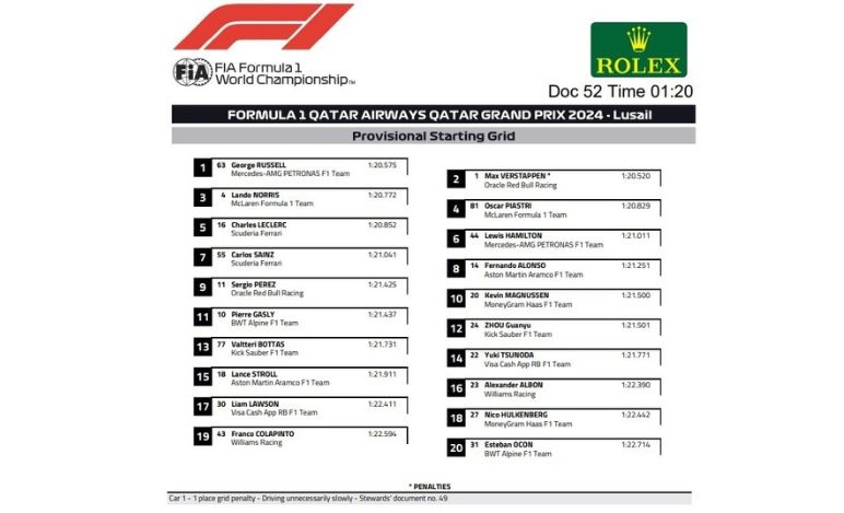 UFFICIALE - Cambia la griglia di partenza del GP del Qatar 2024 - UFFICIALE - La griglia di partenza del GP del Qatar 2024