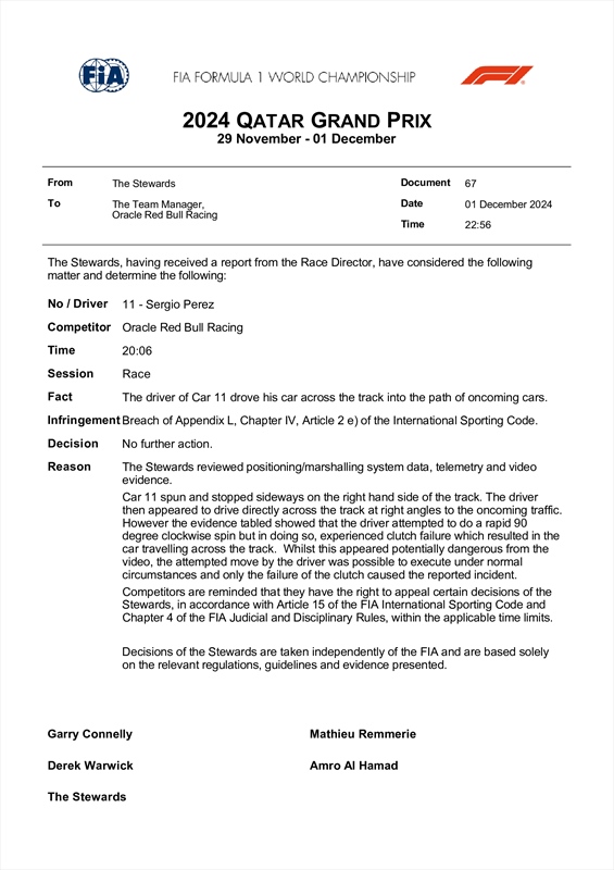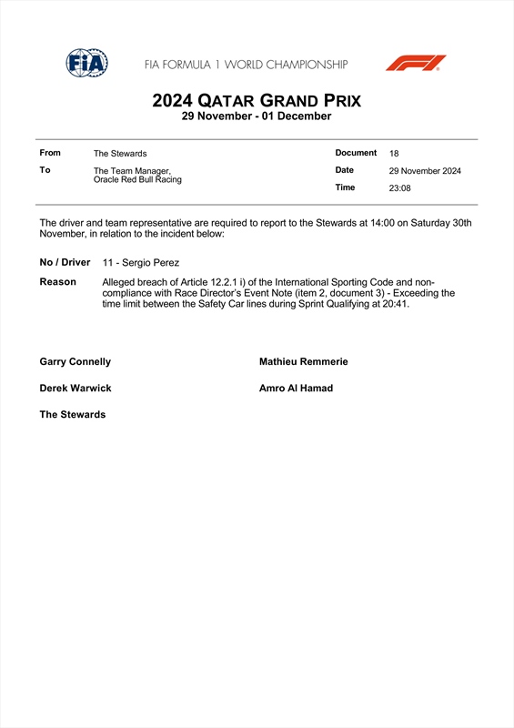 UFFICIALE - La decisione della FIA su Pérez - UFFICIALE - La decisione della FIA su Pérez