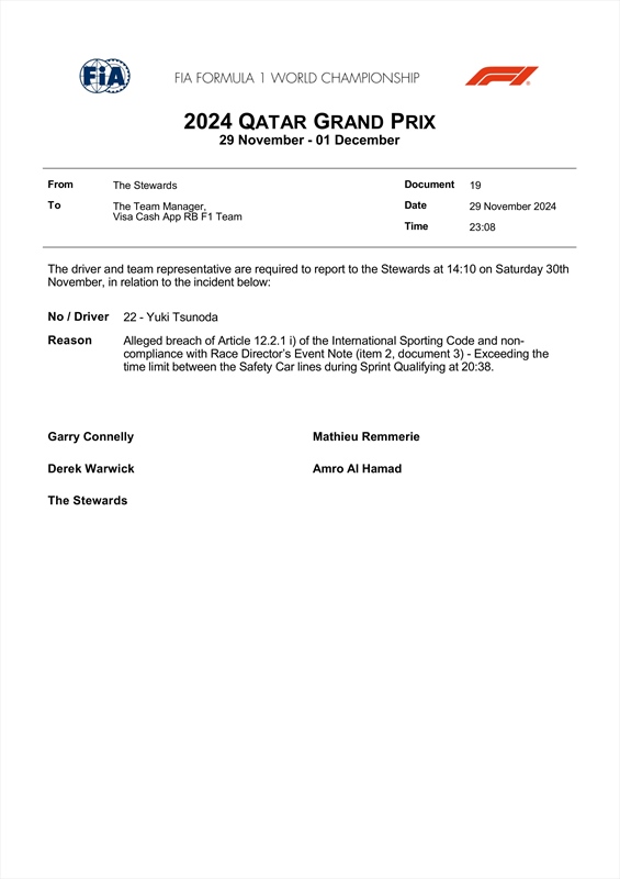 UFFICIALE - Cambia la griglia di partenza del GP del Qatar 2024 - UFFICIALE - Cambia la griglia di partenza del GP del Qatar 2024