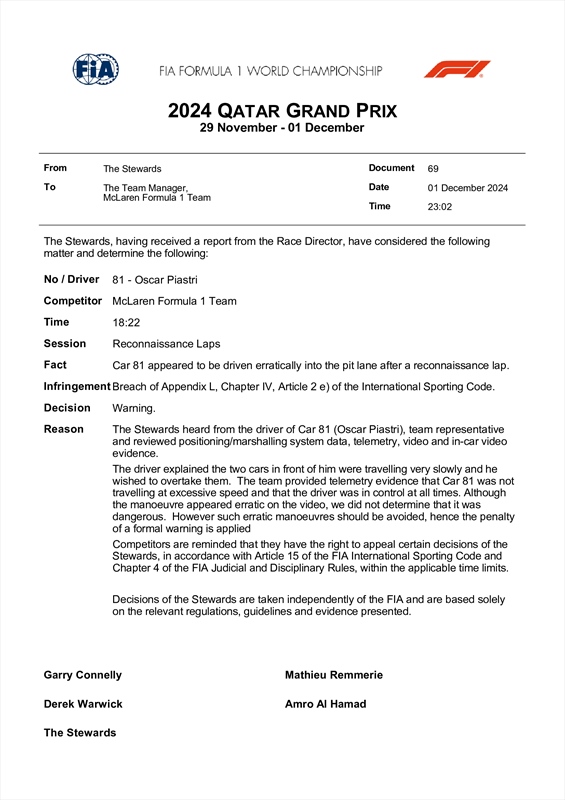 UFFICIALE - La decisione della FIA su Piastri: ecco come impatta sul Mondiale Costruttori - UFFICIALE - La decisione della FIA su Piastri: ecco l'impatto sul Mondiale Costruttori
