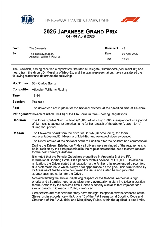UFFICIALE - Sainz, di male in peggio: ennesima rappresaglia dalla FIA, i dettagli - UFFICIALE - Sainz, di male in peggio: ennesima rappresaglia dalla FIA, i dettagli