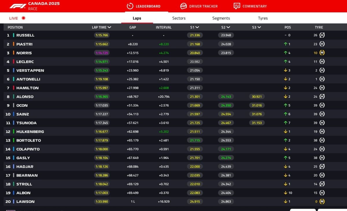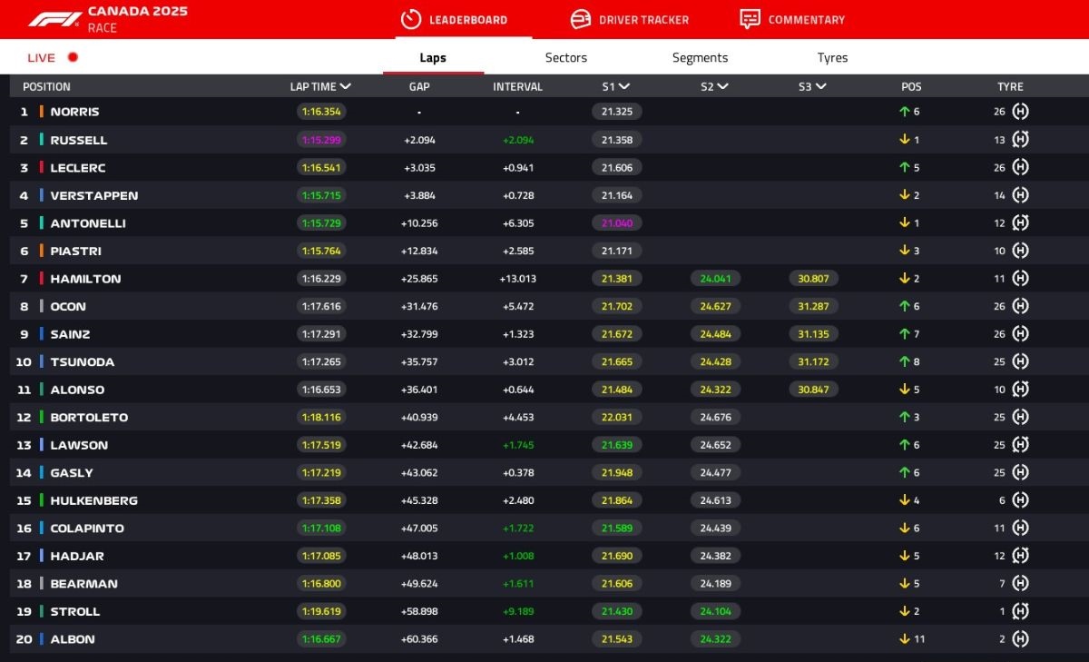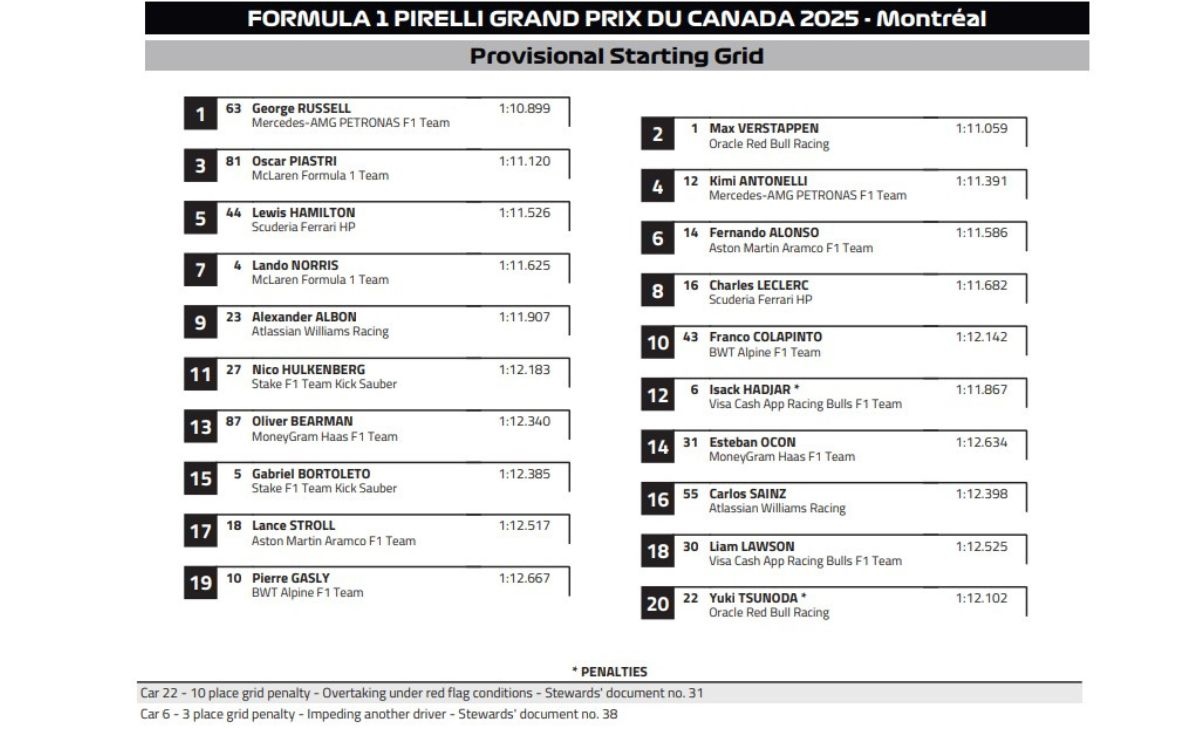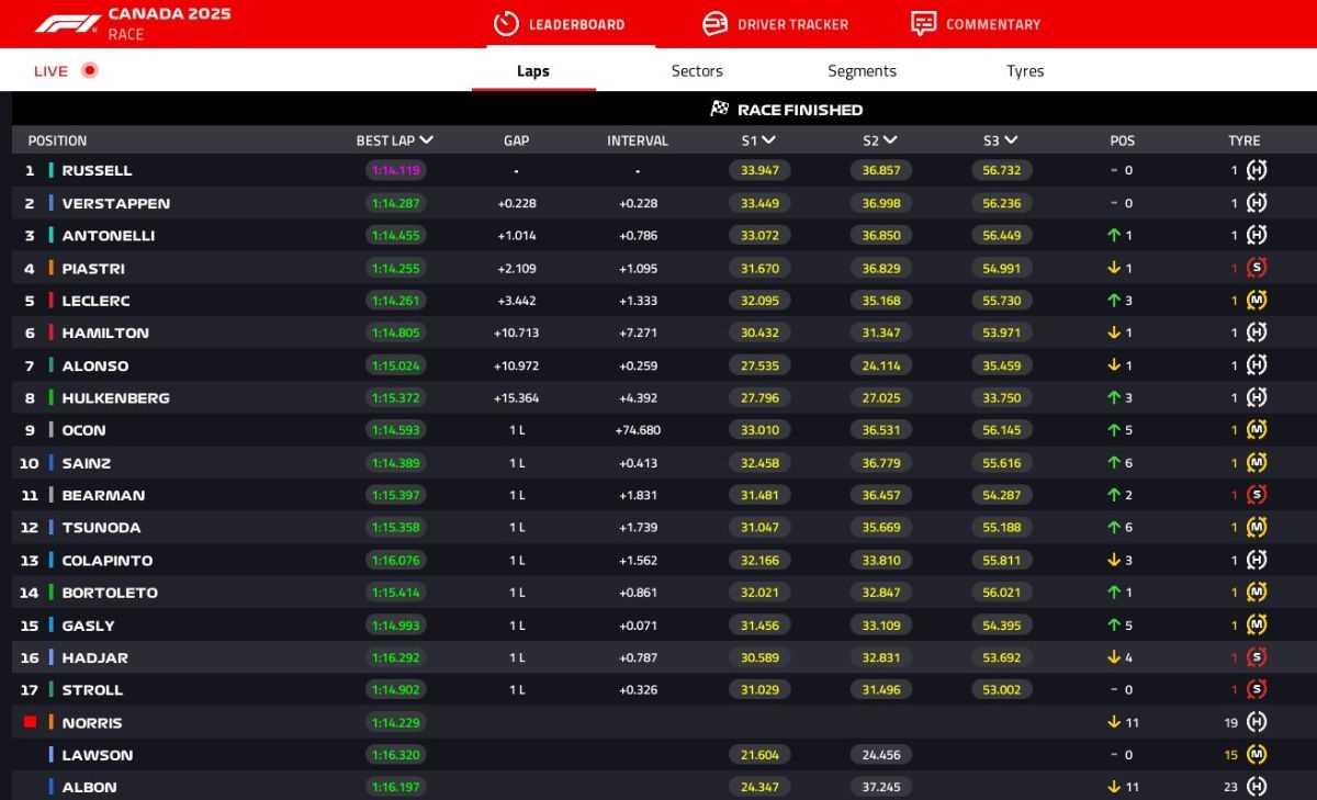 F1 2025 - Le classifiche Piloti e Costruttori aggiornate dopo il GP del Canada - F1 2025 - Le classifiche Piloti e Costruttori aggiornate dopo il GP del Canada