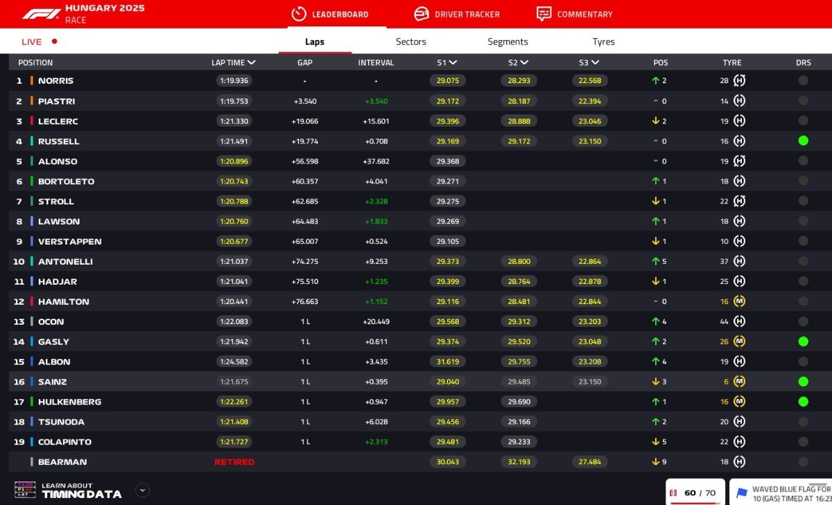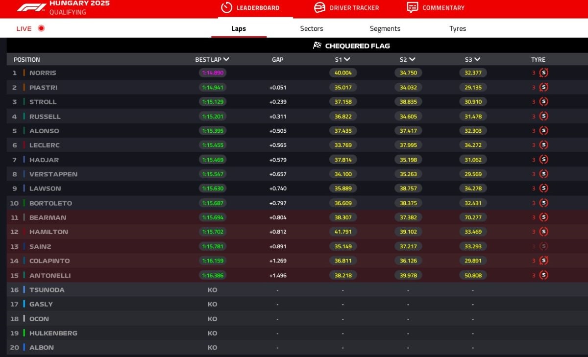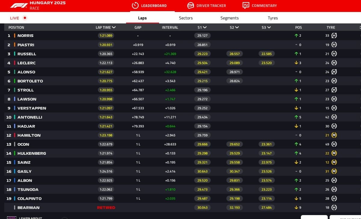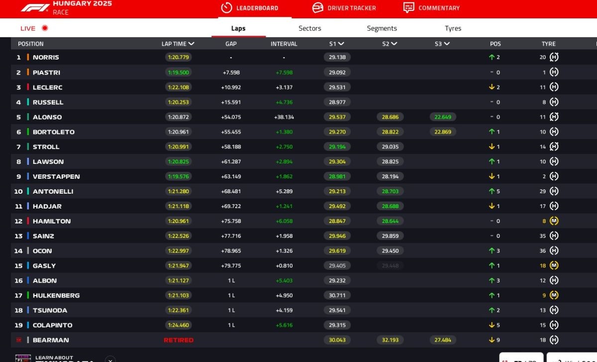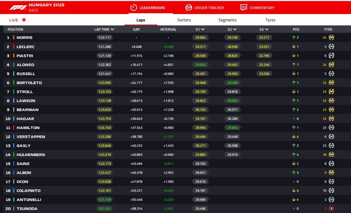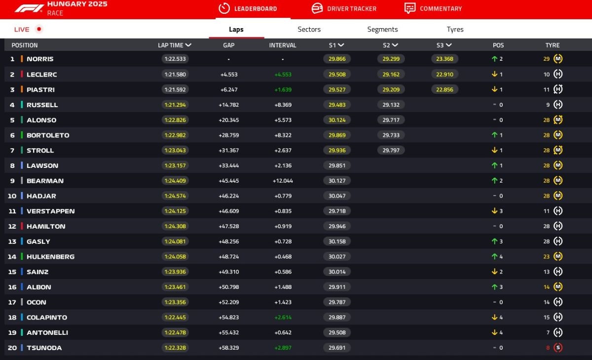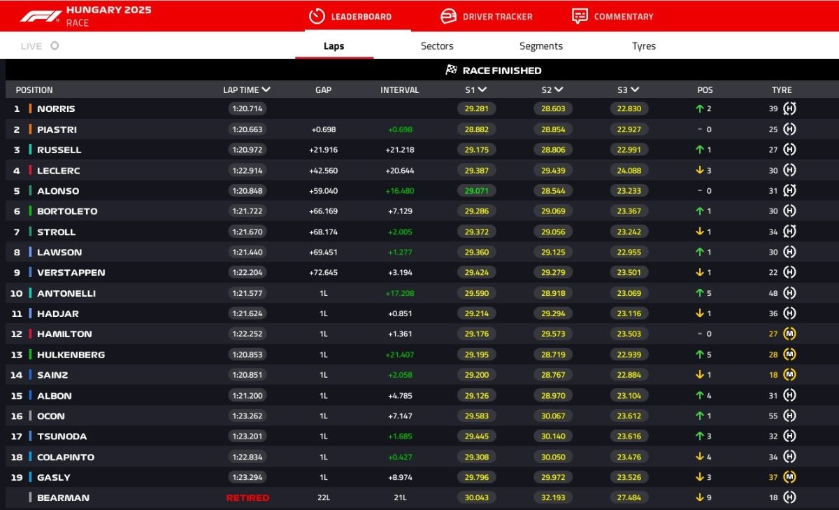 F1 2025 - Le classifiche Piloti e Costruttori aggiornate dopo il GP di Ungheria - F1 2025 - Le classifiche Piloti e Costruttori aggiornate dopo il GP di Ungheria
