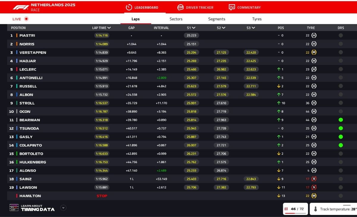 F1 2025 - Le classifiche Piloti e Costruttori aggiornate dopo il GP d'Olanda - F1 2025 - Le classifiche Piloti e Costruttori aggiornate dopo il GP d'Olanda