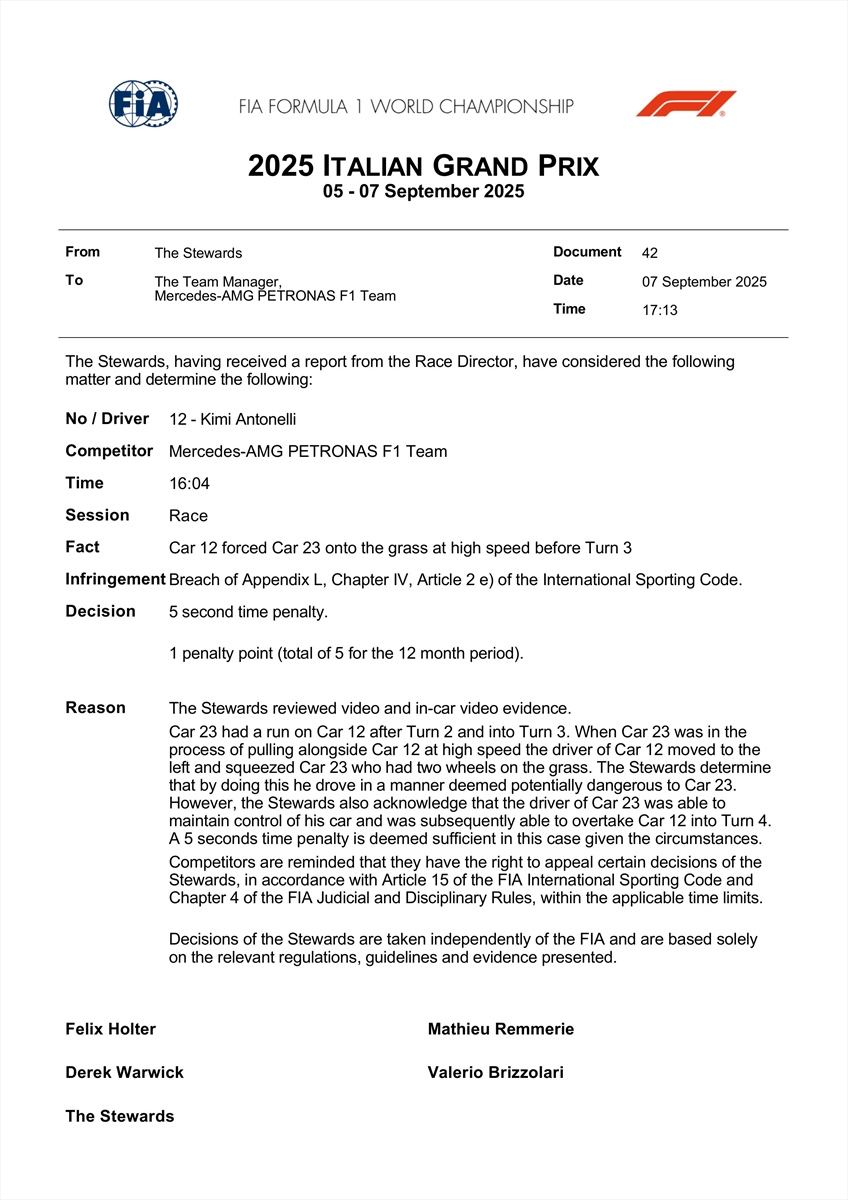F1 2025 - Le classifiche Piloti e Costruttori aggiornate dopo il GP d'Italia - F1 2025 - Le classifiche Piloti e Costruttori aggiornate dopo il GP d'Italia