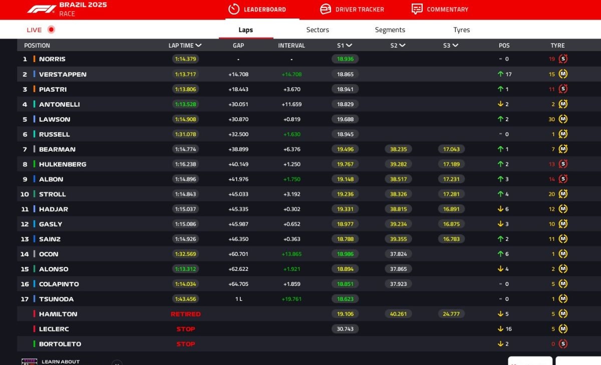18:03 - Si spengono le luci del semaforo! Inizia il 21° appuntamento stagionale ad Interlagos! |