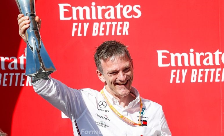 James Allison festeggia sul podio la vittoria della Mercedes, GP degli Stati Uniti 2019