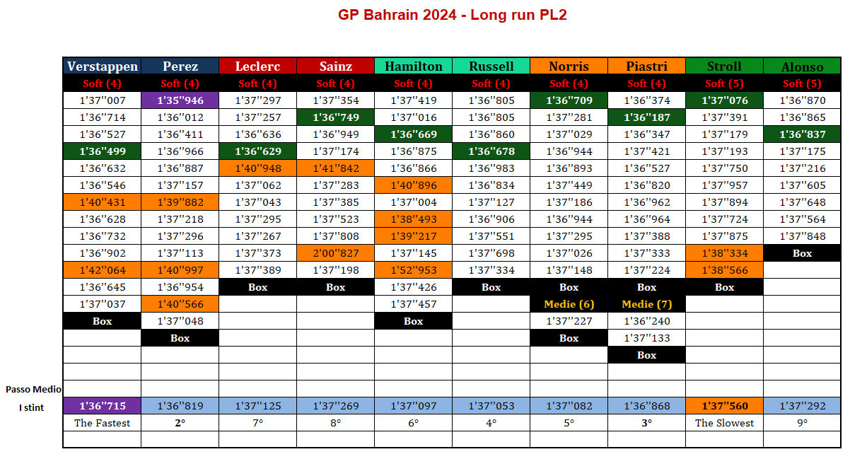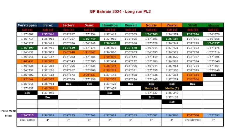 GP Bahrain 2024 - Analisi passo gara PL2: Podio conteso, in 7 per un posto. Ferrari in lotta
