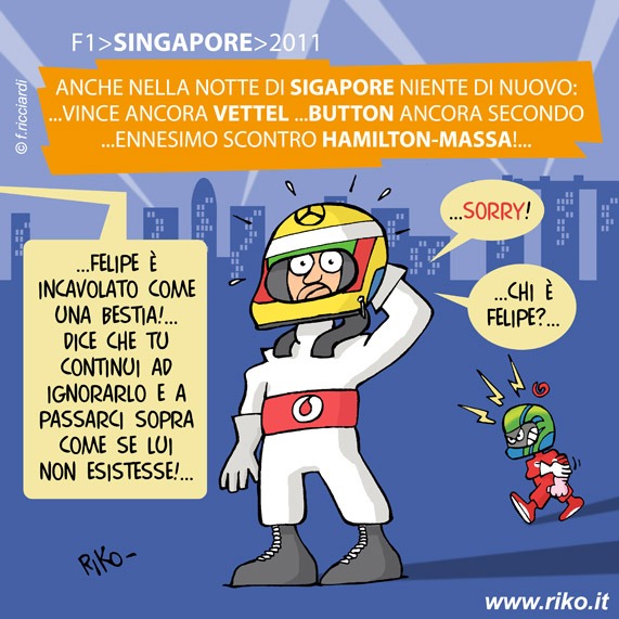 Anche nella notte di Singapore niente di nuovo: vince ancora Vettel...Button ancora secondo...ennesimo scontro Hamilton-Massa