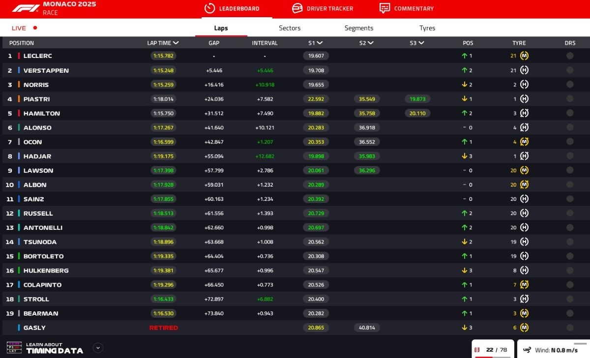 Il GP di Monaco sarà ricco di emozioni. Norris e Leclerc scattano dalla prima fila. Seguiti da Piastri e Verstappen dalla seconda. Solo settimo Hamilton a causa delle tre posizioni di penalità derivanti dall'impeding su Max durante la Q1. Oggi sarà una gara interessante. La Formula 2 dimostra che tutto può accadere e che la seconda sosta può improvvisamente cambiare le sorti della gara.