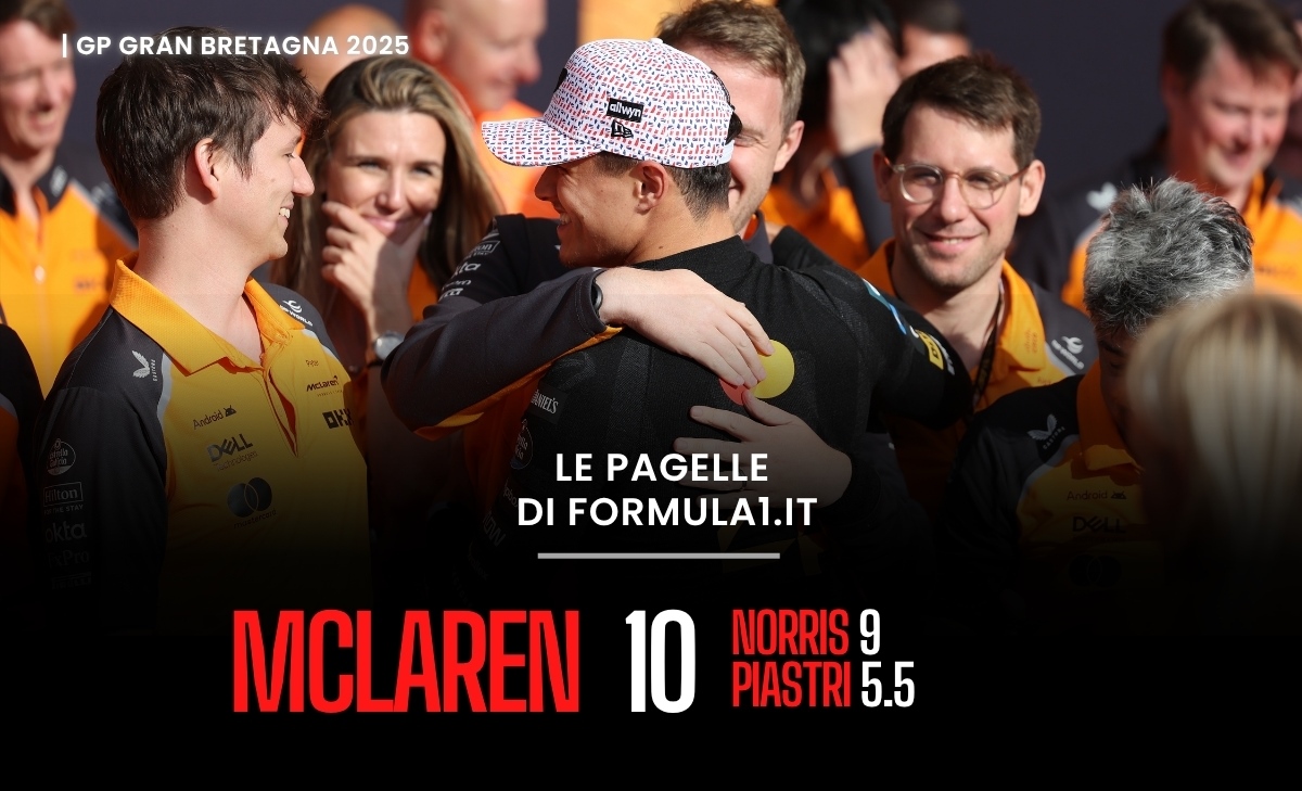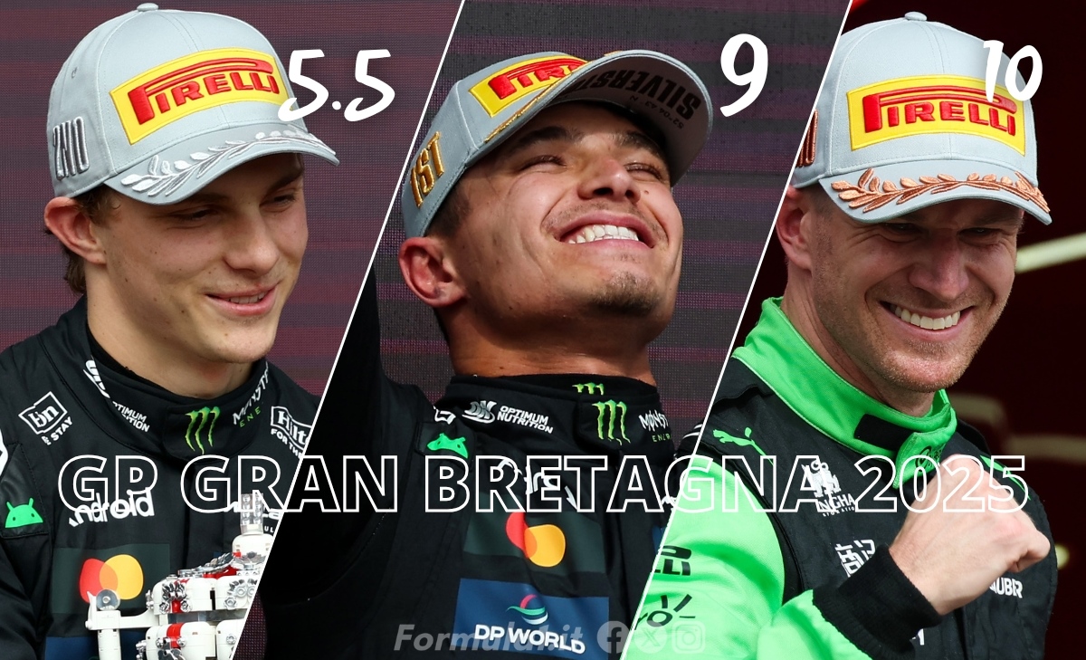 Giunto alla 76° edizione, il GP di Gran Bretagna è probabilmente l'evento per eccellenza del calendario di F1, oltre che tappa più ricca di storia in assoluto e del tutto irrinunciabile per il Circus. Come prevedibile, l'evento di Silverstone ha regalato una grande quantità di azione, sia grazie ai duelli in pista che alle strategie dettate dal meteo variabile e la copiosa pioggia: nei 52 giri utili per l'assegnazione dei punti iridati, la lotta per la vittoria è stata scontata, a differenza di quella per altre piazze, dal podio fino al fondo del gruppo. Al termine del GP sulla pista dove è andata in scena la prima gara della storia della serie, dodicesimo round 2025, ad imporsi è stato Lando Norris su McLaren, seguito dalla vettura gemella di Oscar Piastri e dalla Stake di Hulkenberg. Analizziamo il rendimento di team e piloti con le pagelle.