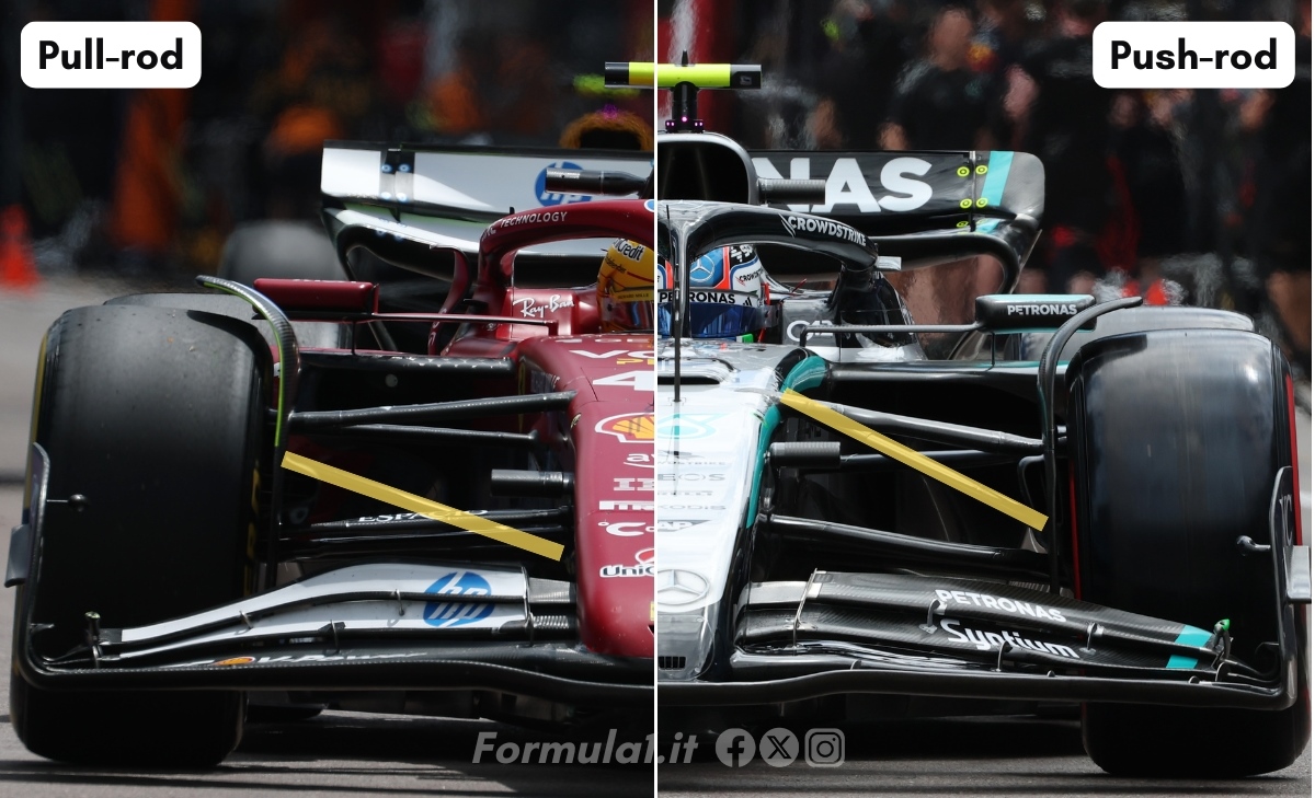 Le sospensioni di una monoposto di Formula 1 sono uno degli elementi più importanti per il comportamento in pista. Le configurazioni usate in F1 sono due: la push-rod e la pull-rod. Ma quali sono le differenze e perché la Ferrari ha deciso di rivoluzionare il suo progetto nel 2025 decidendo di affrontare grandi rischi? Vediamo prima come è fatta una sospensione le differenze tra le due configurazioni.