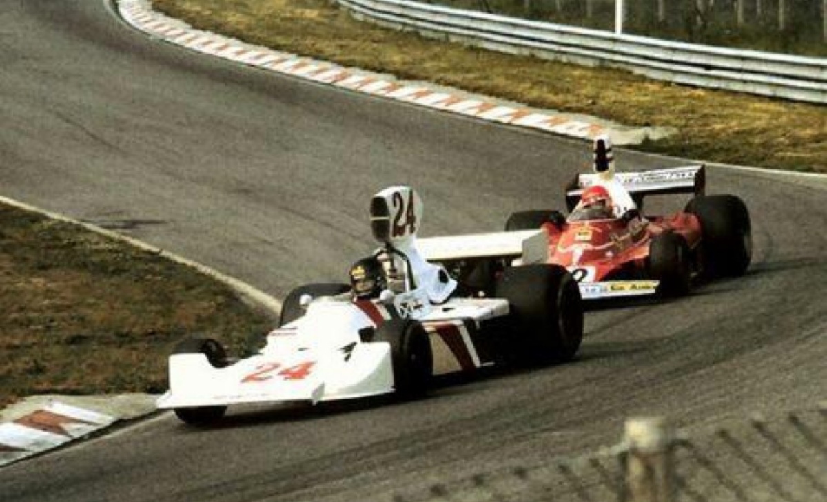 Ferrari dominanti in prova, tracciato rimasto umido in alcuni punti, bagnato in altri per il temporale mattutino. Che monoposto ha in dote Hunt per pensare di insidiare le Rosse di Maranello? Bianca, numero 24; due strisce trasversali: una rossa e una blu; Union Jack e Croce di Sant’Andrea. Sponsor, nemmeno a parlarne. Comparirà poi un orsacchiotto sulla livrea. È la Hesketh, la macchina della scuderia più glamour e fuori dai canoni - anche quelli delle sponsorizzazioni - che abbia fatto parte del Circus della Formula Uno. Al timone, Lord Alexander Hesketh, che a soli ventidue anni aveva fondato la scuderia e che porta in giro per i vari circuiti una specie di caravanserraglio di ostentazioni, dalle bellissime modelle ai vassoi di aragoste e caviale da offrire ai giornalisti, accompagnati da champagne ghiacciato.
