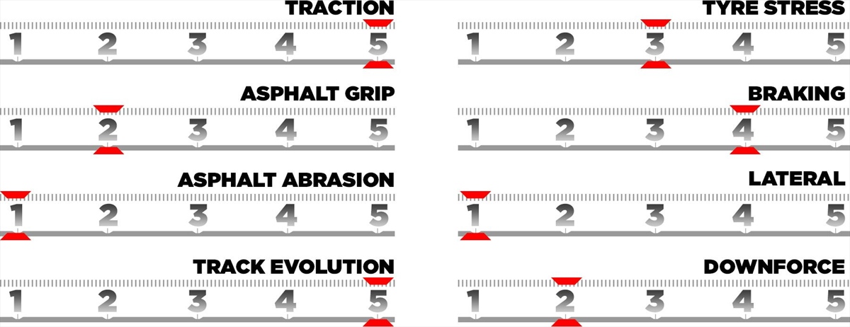 Su un circuito cittadino con bassi livelli di aderenza e usura, portare la stessa selezione del 2024 avrebbe inevitabilmente portato a una strategia a una sola sosta. Almeno in questo modo, considerando che la gamma di quest'anno soffre molto meno di graining, si apre la possibilità di una strategia a due soste. Inoltre, è chiaro che quest'anno, come si è visto di recente a Monza, i team e i piloti sono diventati abili nella gestione delle gomme, quindi è improbabile che la gara vedrà strategie molto diverse. Sebbene sia un circuito cittadino, Baku presenta alcuni rettilinei molto lunghi dove le vetture raggiungono velocità massime molto elevate, che sottopongono le gomme a carichi verticali significativi.