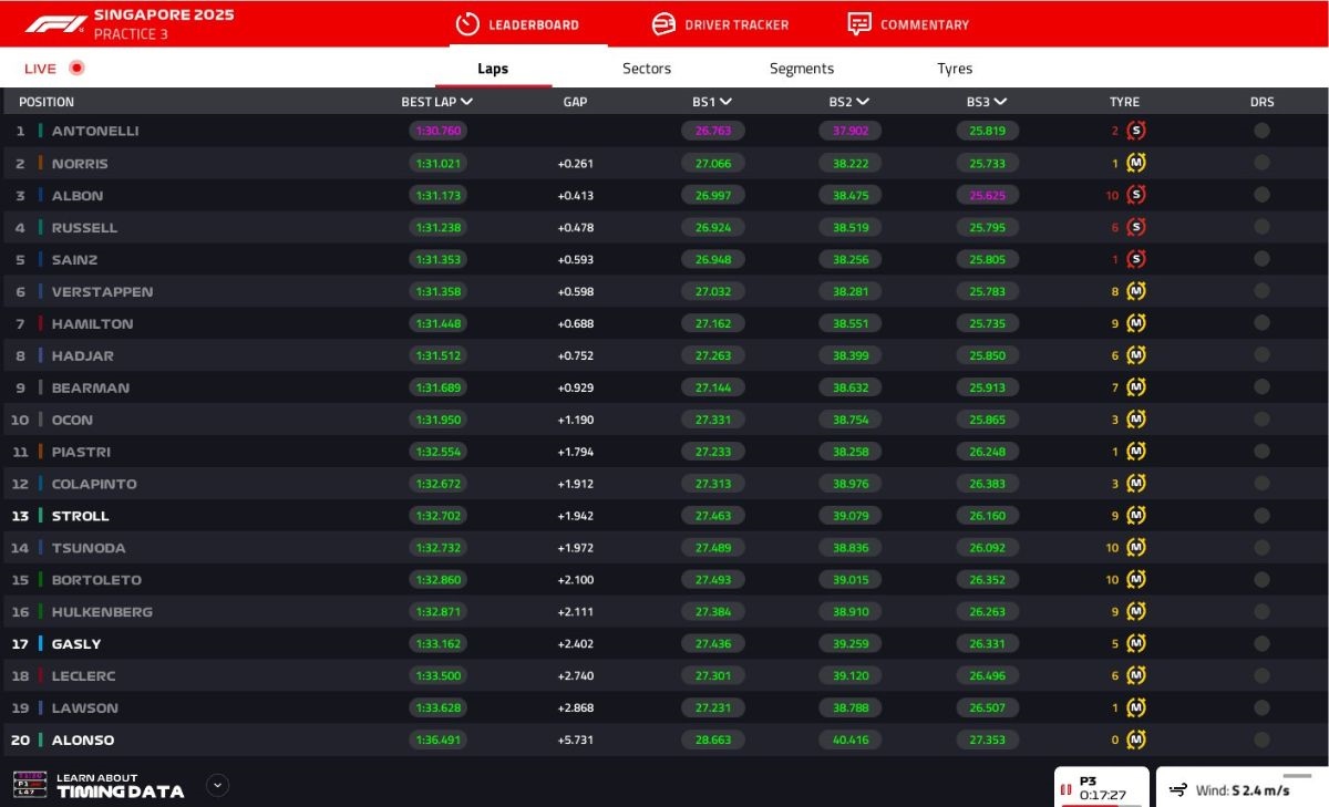 Leggi anche: LIVE - Prove Libere 2 GP Singapore 2025