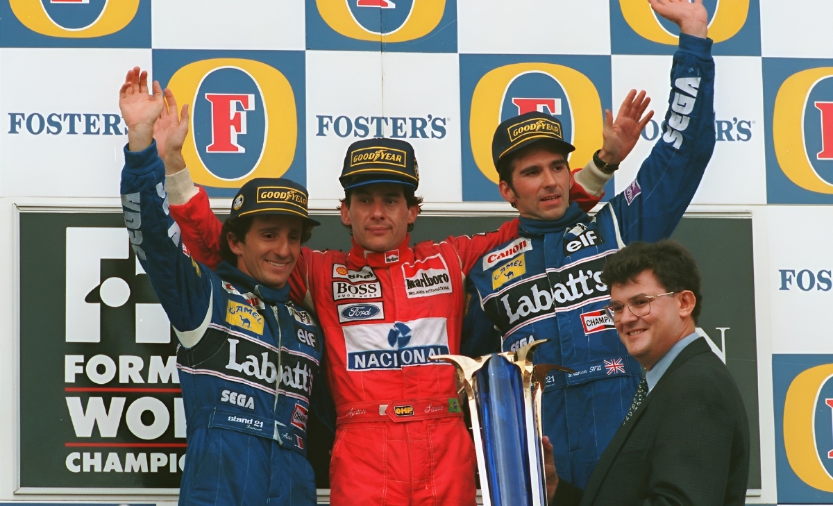 Prima del podio, c’è la passeggiata verso i suoi gradini. Prima del podio c’è tutto quello che può passare per la testa a due che non saranno mai più come sono in quegli istanti: uno ha concluso la sua missione, in pace con se stesso e con i suoi quattro fregi di Campione del mondo; l’altro con la prospettiva di approdare, ora, nella scuderia più forte, per fare il vuoto rispetto a tutti gli avversari che gli restano. Tutti gli altri, che nemmeno messi insieme saranno mai il suo nemico migliore. Se ne rende conto del tutto soltanto durante quei passi verso il trofeo e le magnum di champagne, Ayrton Senna.