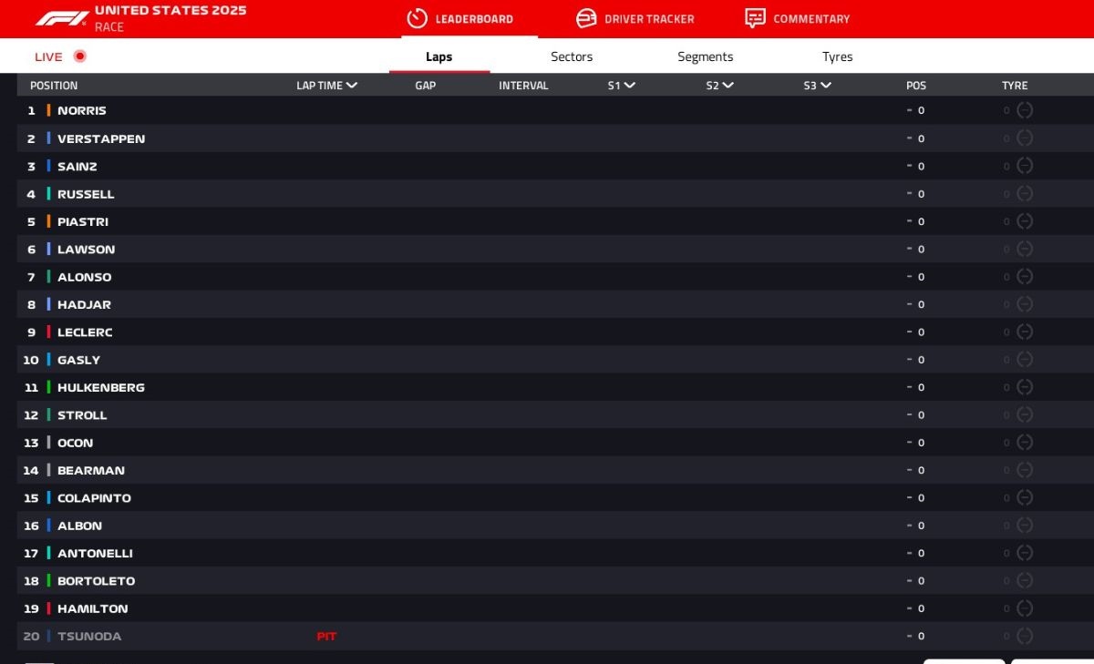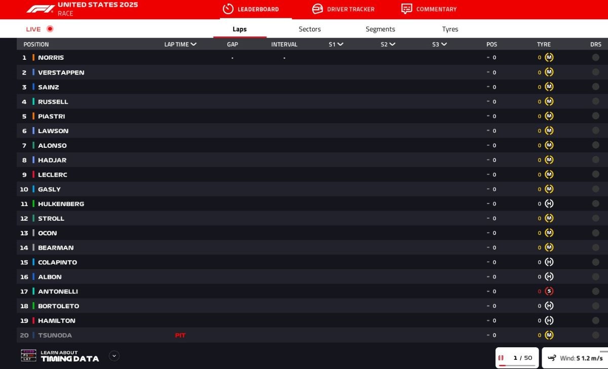 Per la gara non è prevista pioggia, il che dovrebbe permettere ai team di pensare di affrontare il GP mediante delle strategie convenzionali. Norris scatta dalla pole con Verstappen al seguito. Se Lando riuscisse a terminare la gara conquistando più di 9 punti sull'olandese, potrebbe mettere Max definitivamente fuori dalla lotta iridata e fare della sfida iridata un confronto a due tra lui e il compagno Piastri. Oscar cercherà di recuperare dalla P5.