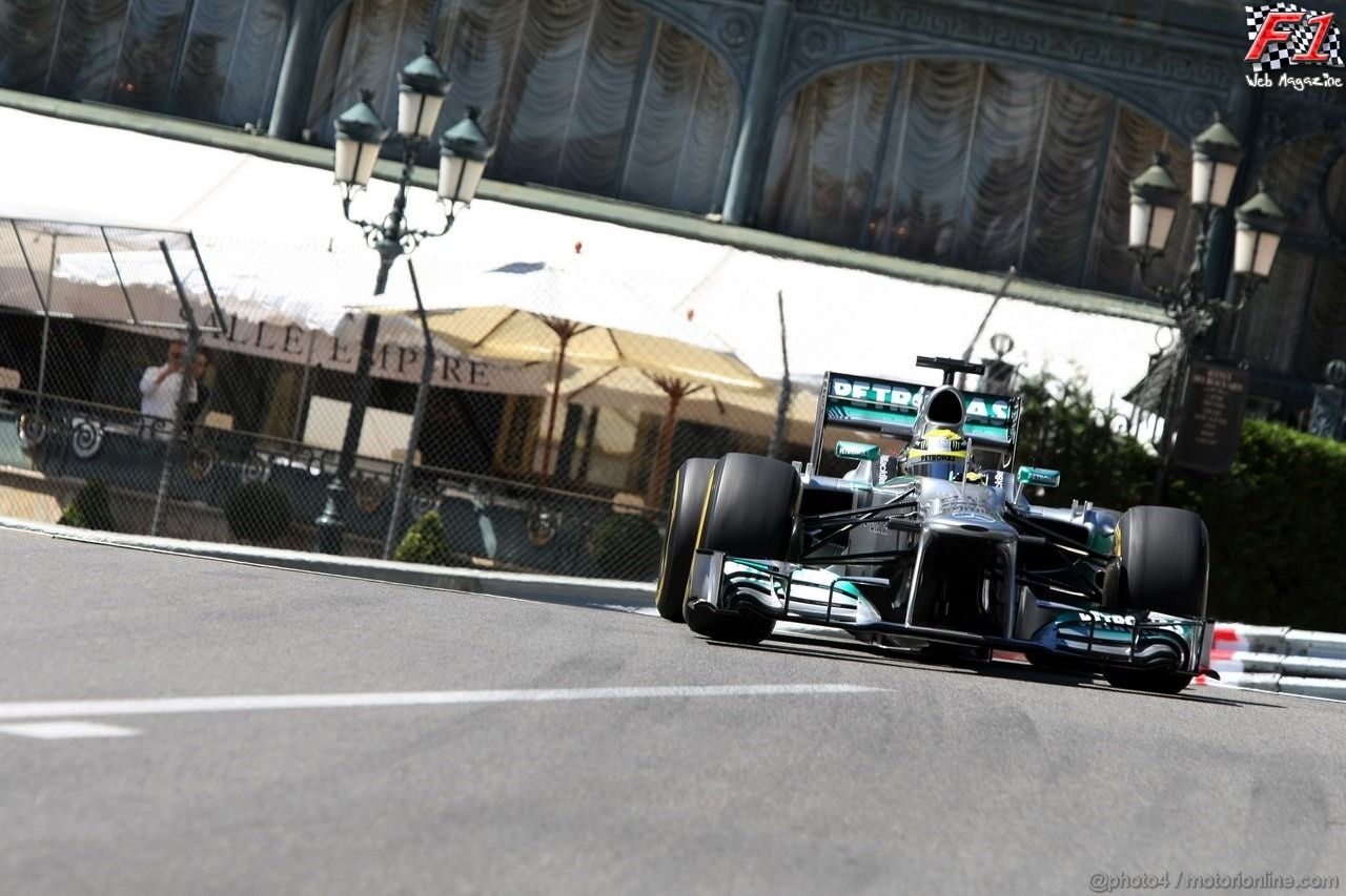 Il weekend della sesta prova del mondiale 2013 si apre in anticipo con le consuete (ma anche desuete, visto che si svolgono il giovedì) prove libere di Montecarlo, Principato di Monaco. Sia nelle libere 1 che nelle 2 (queste ultime svolte alle 14) Nico Rosberg ha messo davanti a tutti la sua Mercedes. Nella seconda sessione, sulla quale di solito ci concentriamo, Lewis Hamilton è riuscito a piazzarsi secondo a tre decimi dal compagno di squadra, dimostrando che la scuderia tedesca continua ad andare veloce in prova e, si presume, anche in qualifica. La novità è che questa forza, stavolta, le Mercedes potrebbero mostrarla anche in gara grazie a un passo interessante mostrato oggi. Un fatto, questo, che renderebbe un po’ più complicato batterle su questo storico tracciato, in cui i sorpassi sono solitamente merce più rara. La Ferrari però c’è e va forte: Fernando Alonso era a soli 87 millesimi da Rosberg in mattinata e ha chiuso le libere 2 in terza posizione, seguito da Massa. Riuscirà la Mercedes a non crollare con le gomme in gara? La Red Bull al momento sembra nascondersi un po’ (cosa non nuova) soprattutto con Vettel, nono. Non splendente la prestazione di Raikkonen con la Lotus, anche se poi in gara siamo abituati a vedere meraviglie da parte del finnico. Kimi ha chiuso le ultime tre gare sempre in seconda posizione, con una costanza impressionante. La Ferrari a Monaco deve spezzare un bel digiuno: non vince dal 2001, quando fu Michael Schumacher a portarla al trionfo. Qualifiche sabato in diretta esclusiva su Sky alle 14.