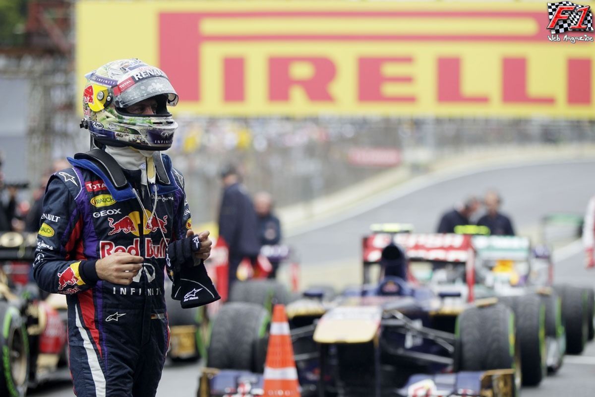 E’ Vettel a siglare l’ennesima pole stagionale nelle ultime qualifiche dell’anno a San Paolo, la sua nona pole quest’anno. La pioggia continua a farla da padrone sul tracciato di Interlagos, ritardando di molto l’avvio della Q3, poi disputata con gomme full wet. Al solito Sebastian Vettel ha abbattuto ogni speranza degli avversari stampando un tempo inferiore di ben sette decimi rispetto a quello di Nico Rosberg, che partirà secondo. Terza posizione (finalmente, viene quasi da dire) per Fernando Alonso, che nonostante il secondo di ritardo dal campione del mondo ha ottenuto un’ottima prestazione, tra l’altro compromessa da un errore senza il quale avrebbe potuto partire in prima fila. Quarto piazzamento per Mark Webber, seguito da Hamilton e Grosjean. Settima e ottava le Toro Rosso di Ricciardo e Vergne. Soltanto nono Felipe Massa, pilota di casa, seguito dalla Sauber di Nico Hulkenberg. Mercedes comunque sempre “vicine” alla Red Bull questo fine settimana. Undicesima piazza per Kovalainen con la Lotus. Solo quattordicesima e quindicesima le McLaren con Perez e Button rispettivamente. Prevista pioggia anche per domani, giorno della gara, con il gran premio che partirà alle 17 ora italiana. Sarà l’ultima gara di Formula 1 con i motori V8 prima dell’avvento dei V6 turbo “power unit”.