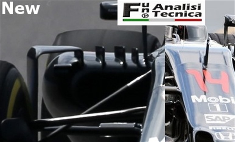 Sulla McLaren MP4-31 oltre alla piccola modifica all'ala anteriore che abbiamo analizzato ieri, durante le prove libere di questa mattina si è notata un'altra novità sul corpo vettura della vettura di Woking.