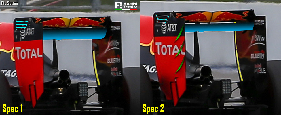 A differenza dei maggiori competitors, Red Bull è arrivata sul tracciato di Barcellona senza alcuna novità tecnica sulle proprie RB12. Come potete osservare dalle immagini in basso è stato scelto di utilizzare l'ala posteriore da alto carico caratterizzata da quattro soffiature nella parte alta delle derive verticali. Abbandonata temporaneamente la versione di ala dotata di un'unica soffiatura unica verticale che va a collegarsi con la prima soffiatura orizzontale.