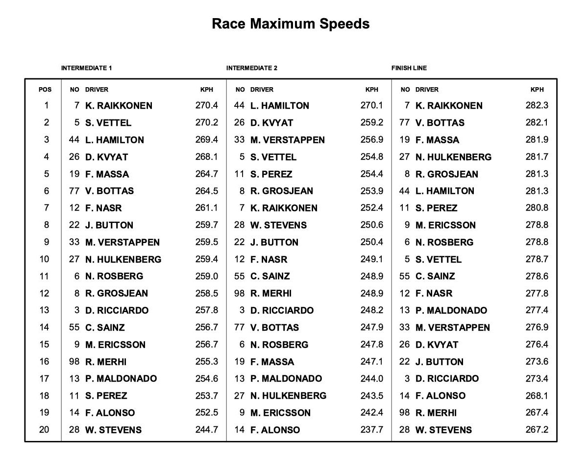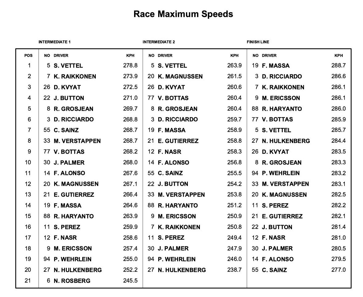 Quest’anno la situazione è completamente cambiata e la RedBull RB12 pur disponendo di una Power Unit che paga ancora circa 50 CV da Mercedes riesce ad essere veloce sia sul dritto (pur non scaricando molto le ali) che in trazione. La velocità in trazione non sorprende perché telaisticamente già dai test si vedeva che la RB12 era nata bene ma i dati che sorprendono sono quelli relativi alla velocità massima.