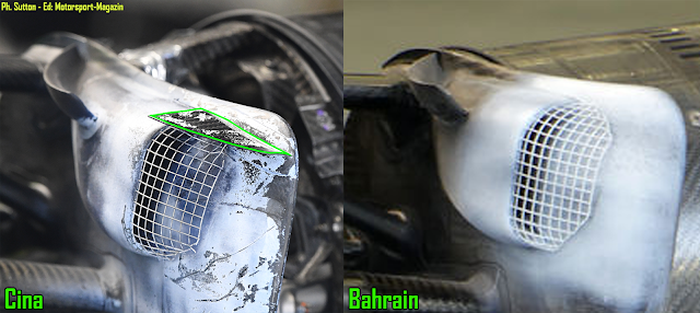 2) in Cina, al terzo appuntamento stagionale, sono state mantenute le prese d'aria in versione maggiorata ma c'è stata l'introduzione di un piccolo profilo utile a generare vorticità, gestita poi dal secondo profilo, curvo.