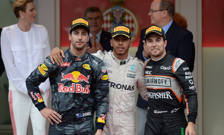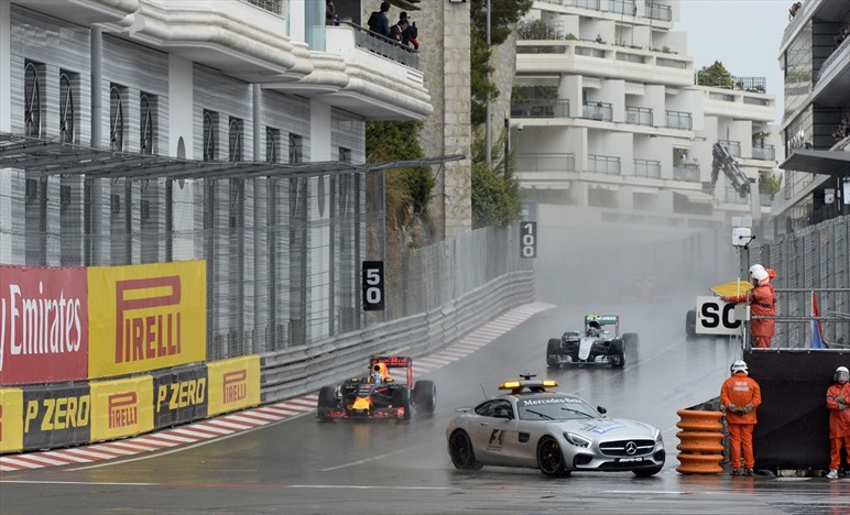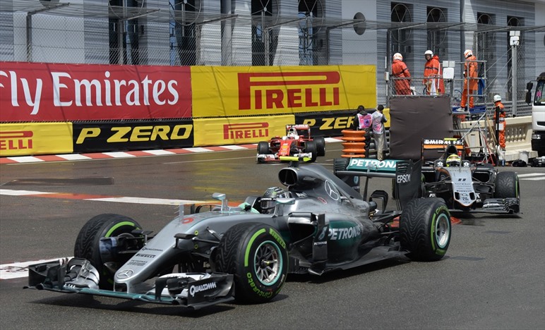 Perché la gara del tedesco, comunque saldo leader della classifica, non è stata brillante. E’ stata costellata, anzi, di problemi che lo hanno portato a chiudere addirittura settimo, quindi con uno scarso bottino di punti, insufficienti a contenere bene i danni. Infatti Lewis Hamilton, adesso, si è proiettato con il risultato odierno a meno di una vittoria dal compagno di squadra (in termini di punti). Un trionfo sudato, arrivato con l’intuizione di una strategia di cambi gomme diversa dalle altre: oggi, grazie alla pioggia abbondante caduta fino all’inizio della gara, tutti sono partiti con gomme full wet. Finita la pioggia e andando asciugandosi il tracciato, la sequenza seguita da tutti è stata dapprima l’uso delle intermedie da bagnato e poi delle slick (la Pirelli ha scelto per Montecarlo le tre mescole più soffici, facendo esordire la ultra-soft a banda viola).