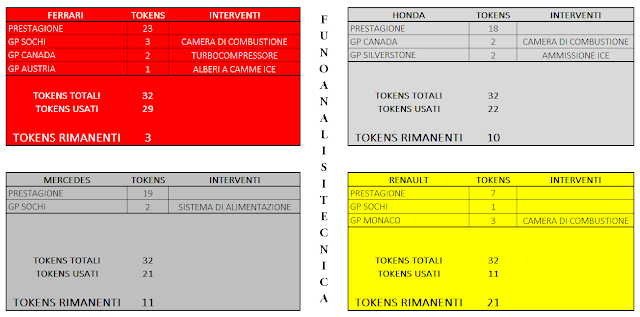 Concludiamo questo articolo dicendovi che dalle informazioni in nostro possesso, Mercedes nell'evoluzione che porterà in pista tra Spa e Monza non andrà ad utilizzare tutti e 11 i gettoni a sua disposizione: i rimanenti verranno spesi ai banchi senza l'introduzione fisica di ulteriori modifiche nei restanti sei Gran Premi che dovranno essere corsi dopo il Gran Premio d'Italia di Monza anche se Rosberg avrà la necessità di una ulteriore sostituzione della Power Unit per terminare il mondiale.