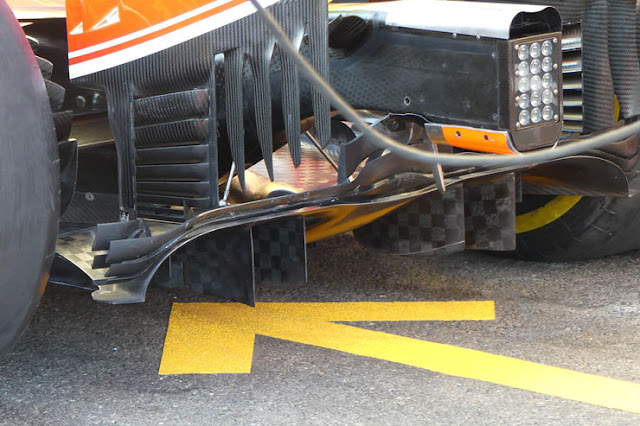 Dopo avervi mostrato le due versioni di ali da basso carico adatte ad un tracciato come quello di Spa che ha all'interno tratti molto veloci, è ora di mostrarvi una novità al diffusore finora mai vista in pista.