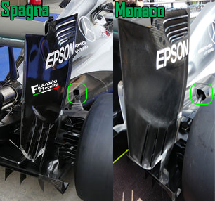 Nella foto confronto appena postata si può notare la differenza tra lo sfogo classico, in basso, con quello invece più ampio utilizzato anche in un'altra gara molto calda della stagione, a Baku nel Gran Premio d'Europa di qualche settimana fa.