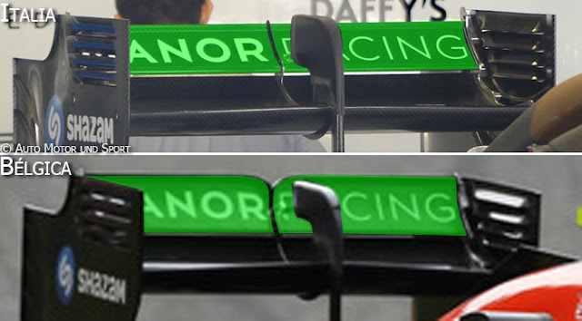 Per bilanciare il carico aerodinamico tra anteriore e posteriore è stata portata un'ala posteriore che rispetto a quella utilizzata a Spa presenta un flap mobile con corda accorciata ed una curvatura molto meno pronunciata.