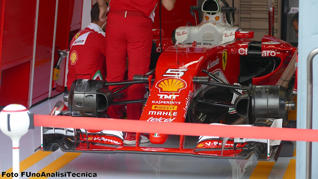 La Ferrari per il Gran Premio di Monza non ha portato nessuna novità tecnica ma nella mattinata di questo primo giorno del weekend di Monza abbiamo notato che su entrambe le vetture è stata scelta una configurazione asimmetrica sui cestelli dei freni anteriori.